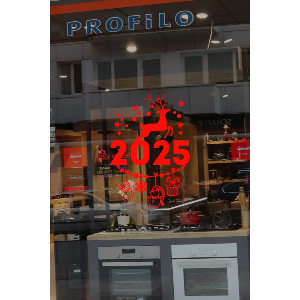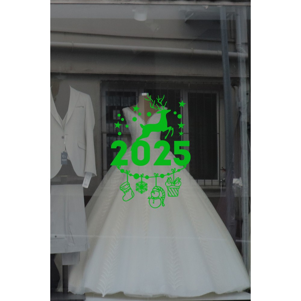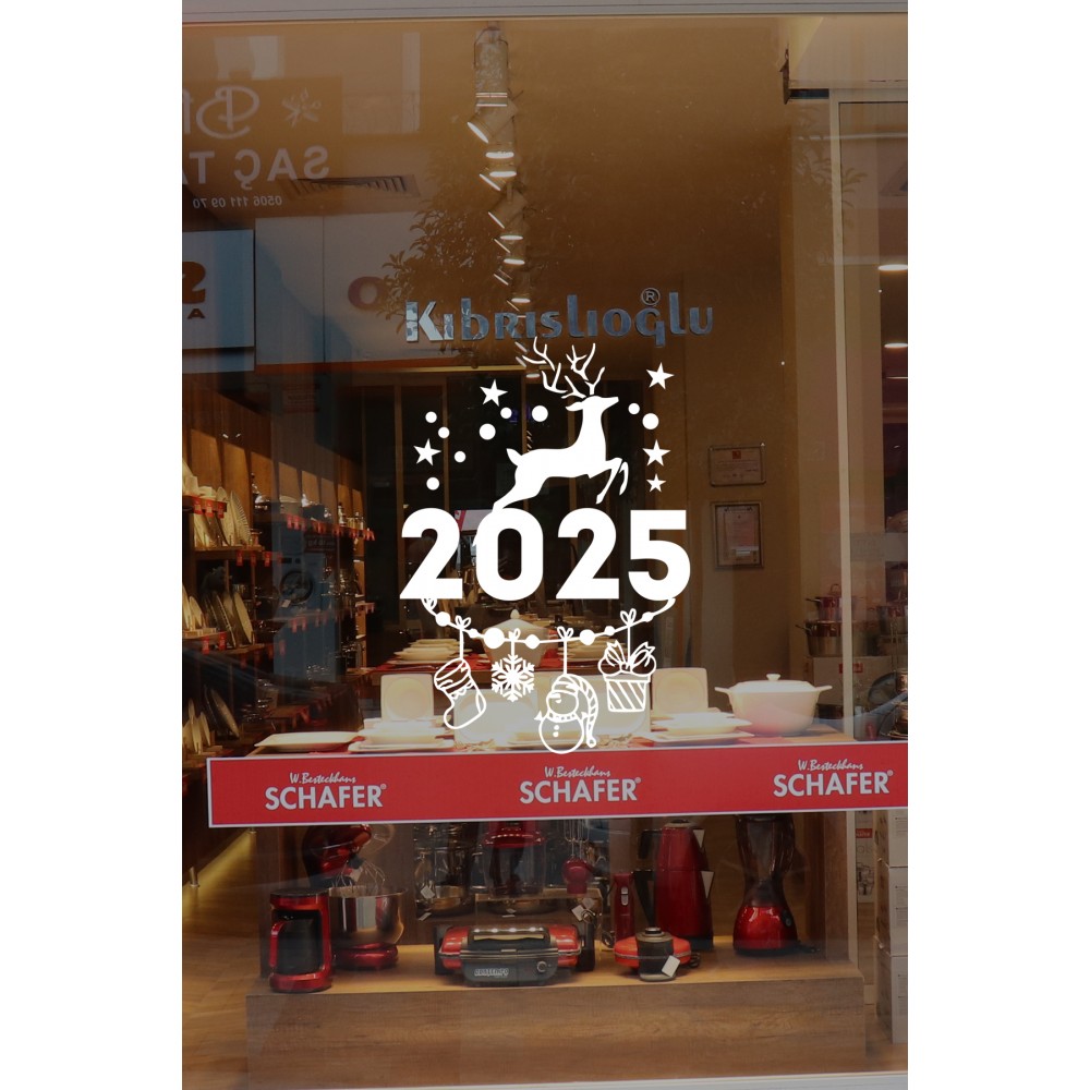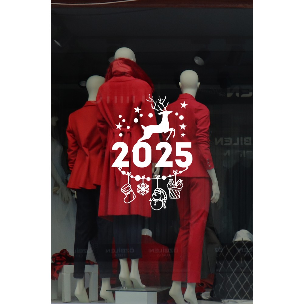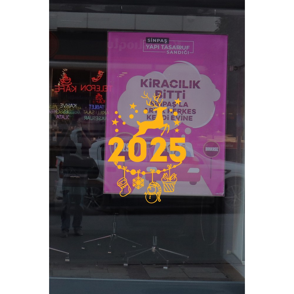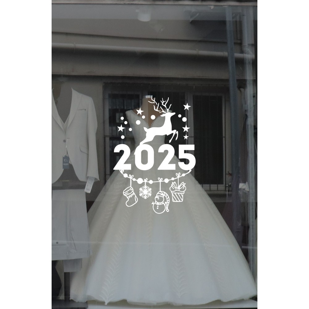 2025 Yazısının Üzerinde Geyik Altında Sevimli Hediye Paketleri Yılbaşı Süslemeleri