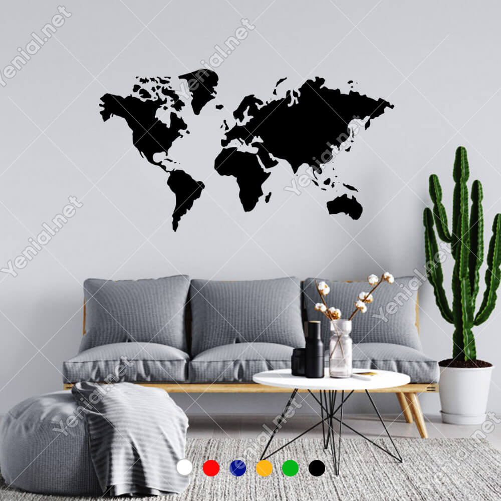 Dünya Haritası Duvar Oda Salon İş Yeri İçin Sticker 100x55cm