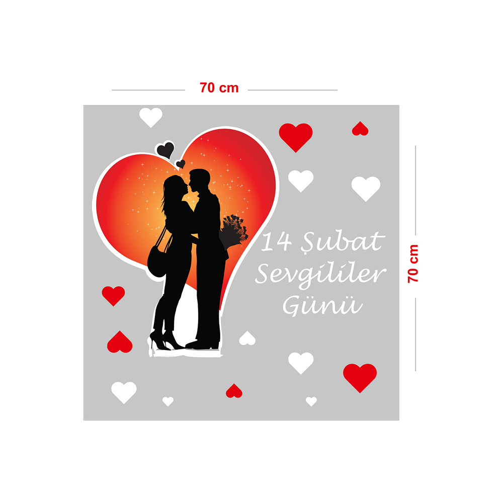 Birbirine Sarılan Sevgililer, Sevgililer Günü Cam Vitrin Oda Sticker 70cm