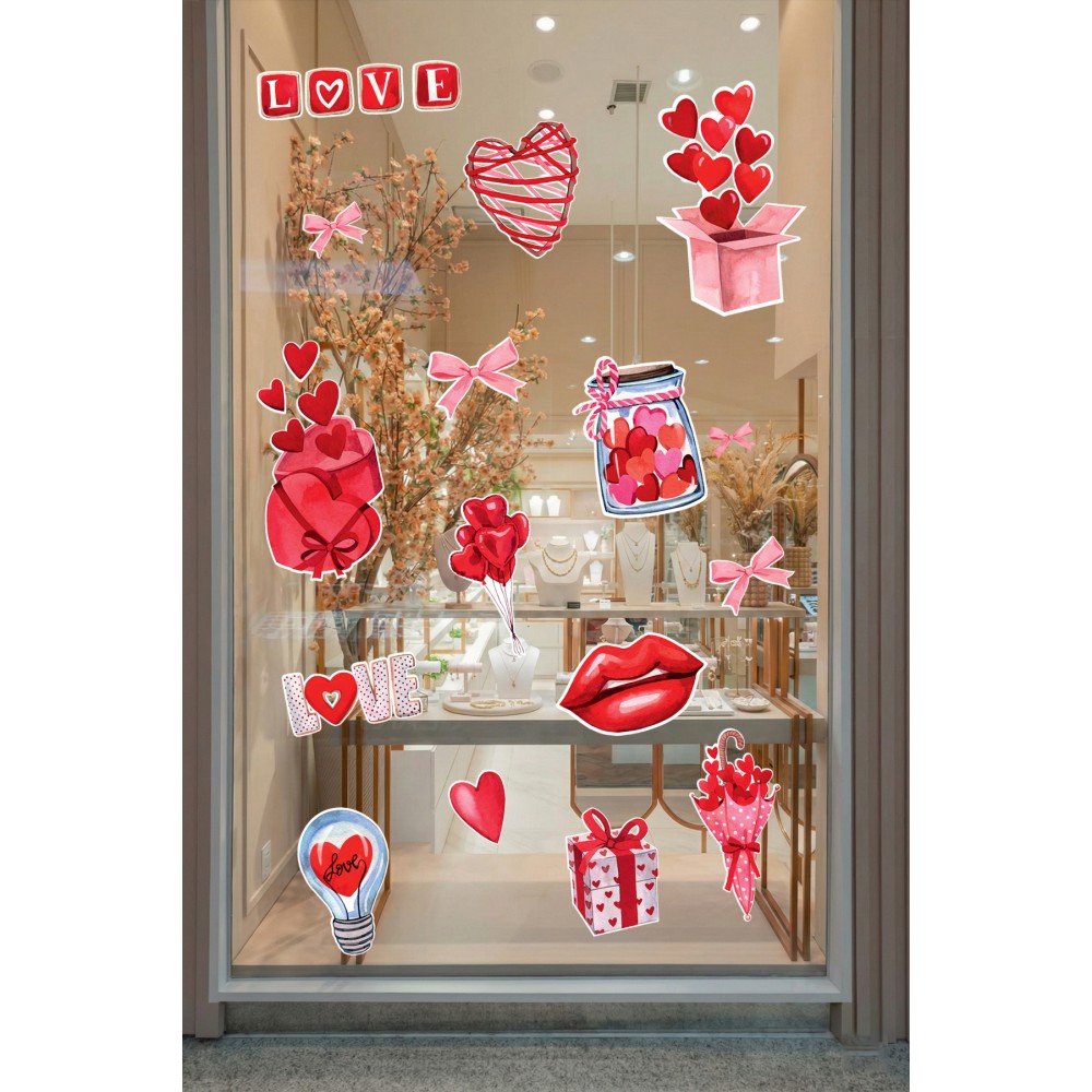 Hediye Kutusu & Kalpler Aşk Temalı Karışık Sticker Seti - Romantik Cam Kapı Duvar Vitrin Dekoru