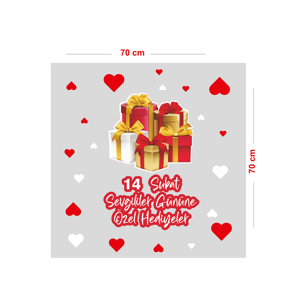 Hediye Paketleri ve Kalpler Sevgililer Gününe Özel Hediyeler Cam Vitrin Oda Stickerı 70cm