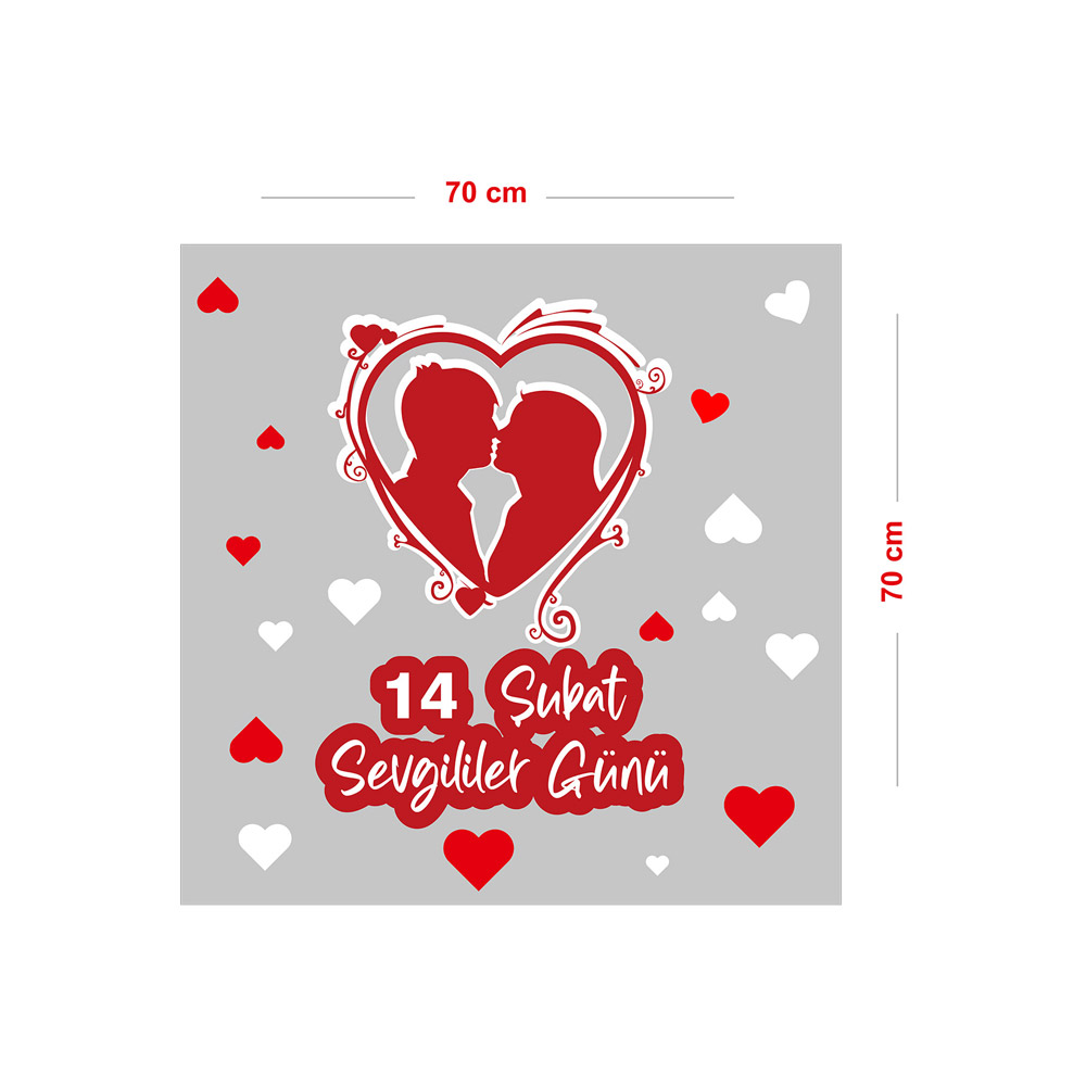 Öpüşen Sevgililer 14 Şubat Sevgililer Günü Cam Vitrin Oda Stickerı 70cm