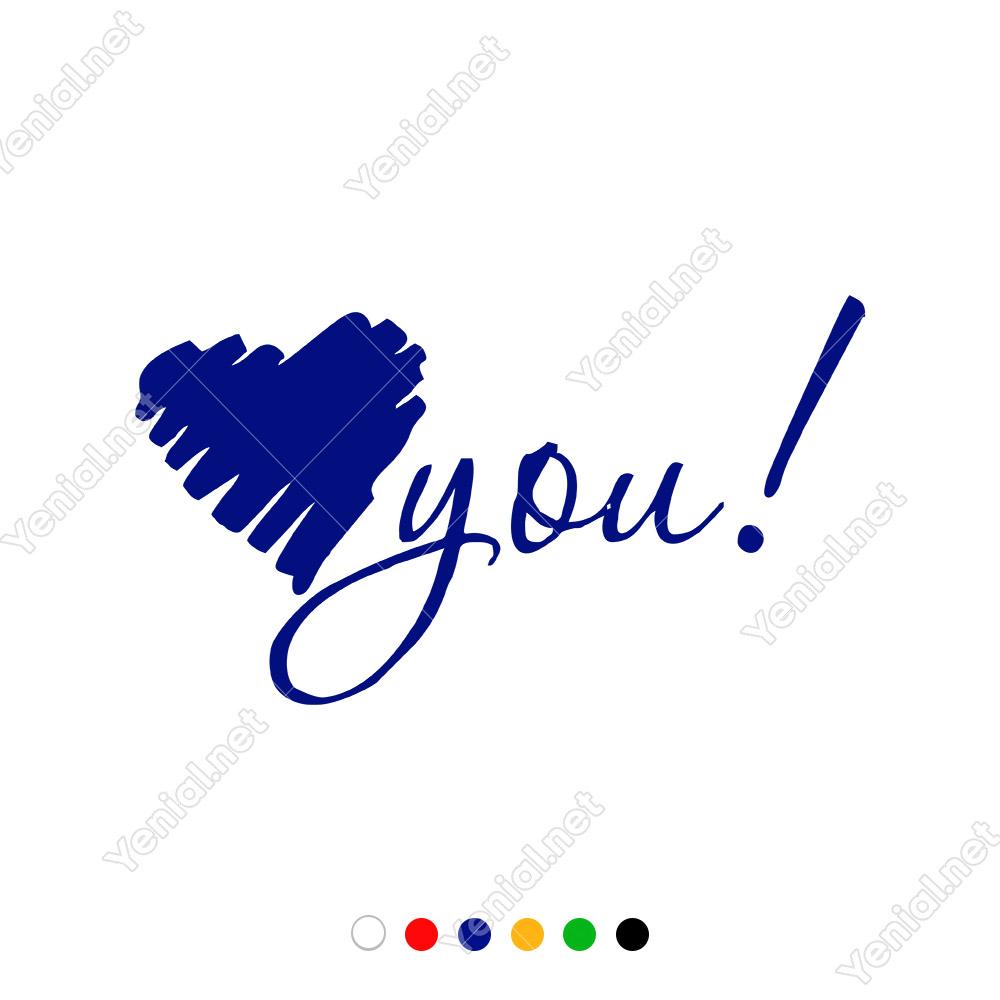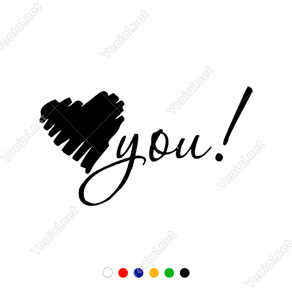 El Yazısı ile Yazılmış Kalp Şekli ve You Yazısı Sticker 60x33cm