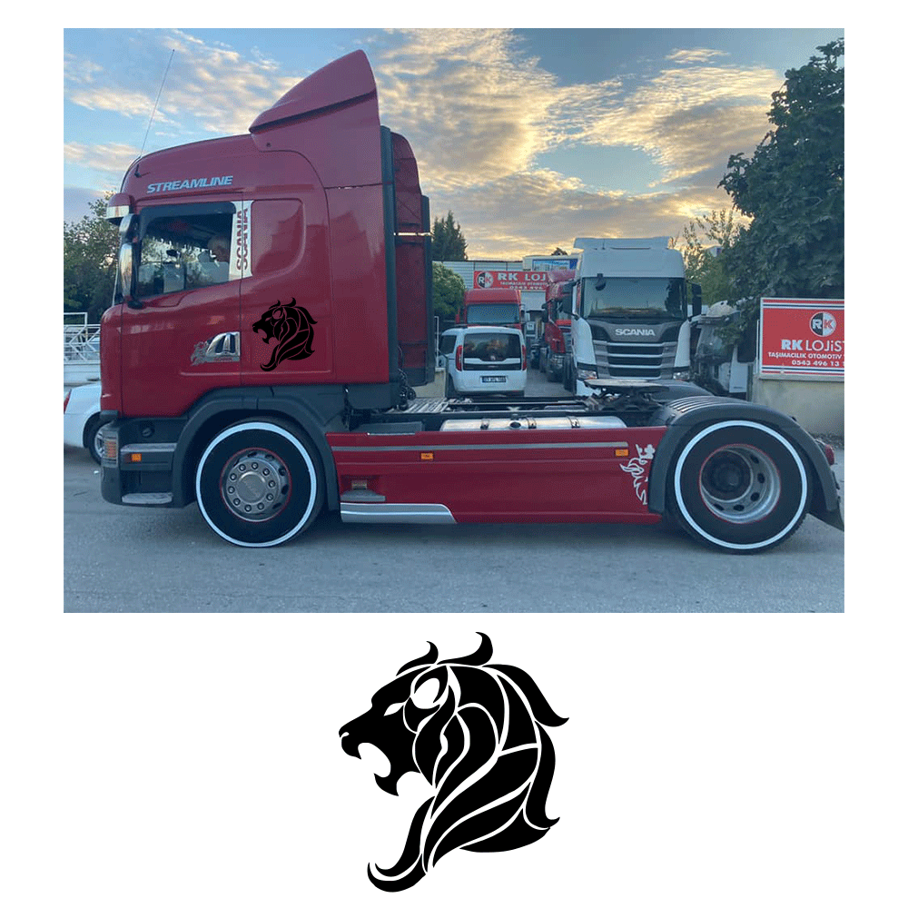 Kişiye Kamyona Özel Yeleli Aslan Sticker Yapıştırma