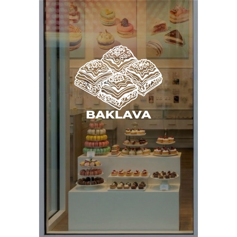 Baklava İkonlu Cam Vitrin Sticker – Kafe Dekorasyonu - Kafe Sticker Vitrin Tasarımı