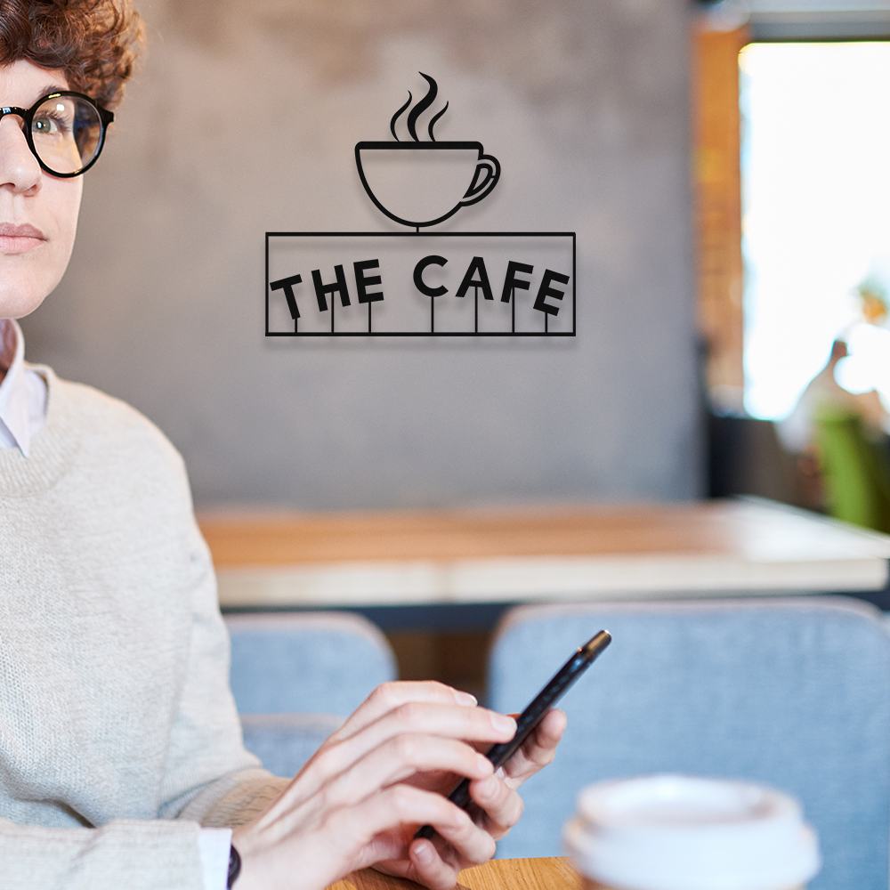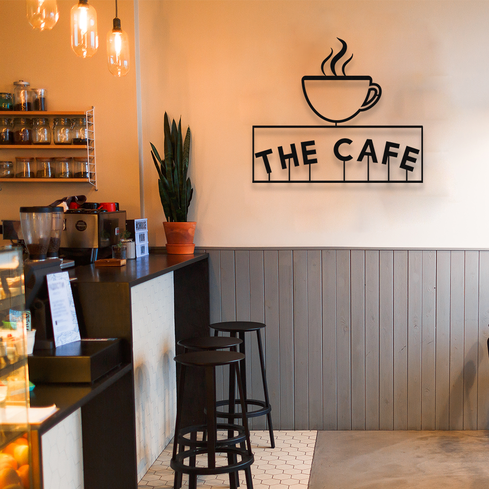 - Firmaya Özel THE CAFE VE KAHVE FİNCANI METAL Tabela 50x40 cm