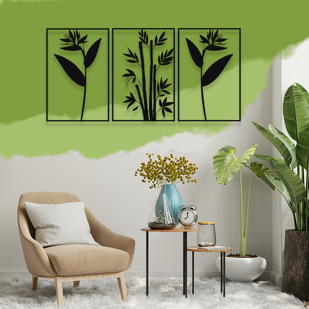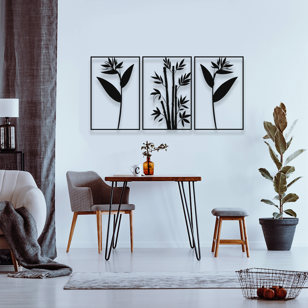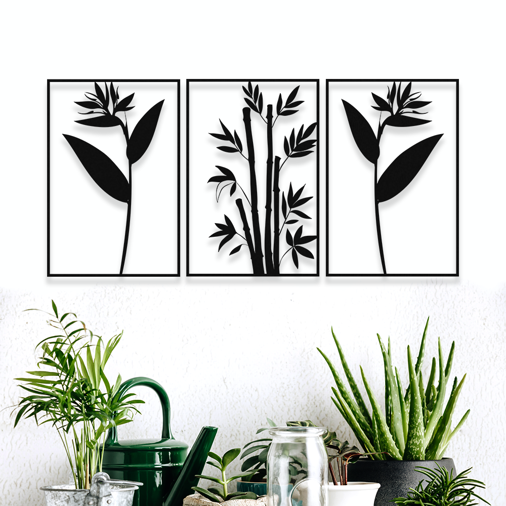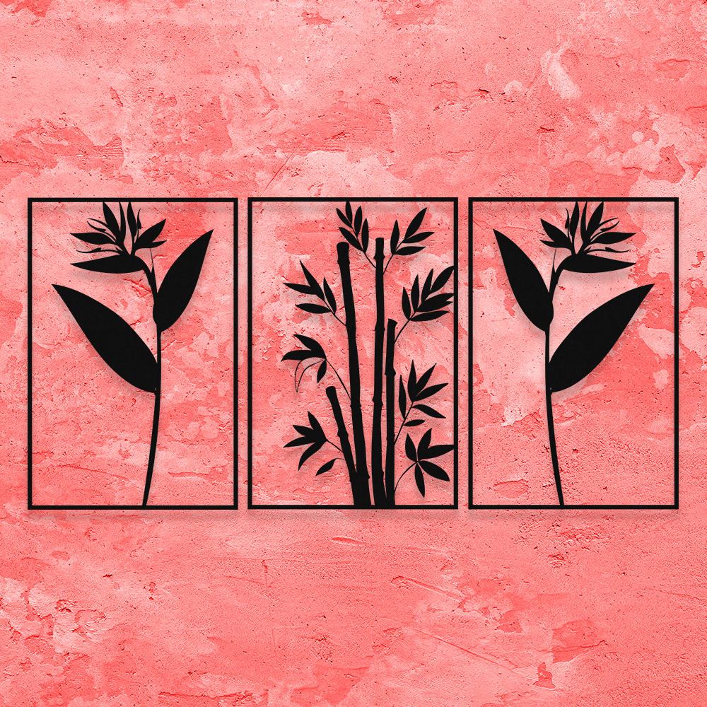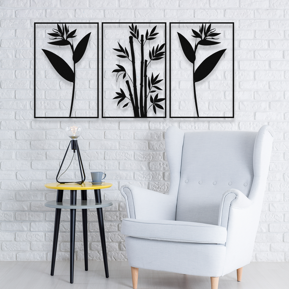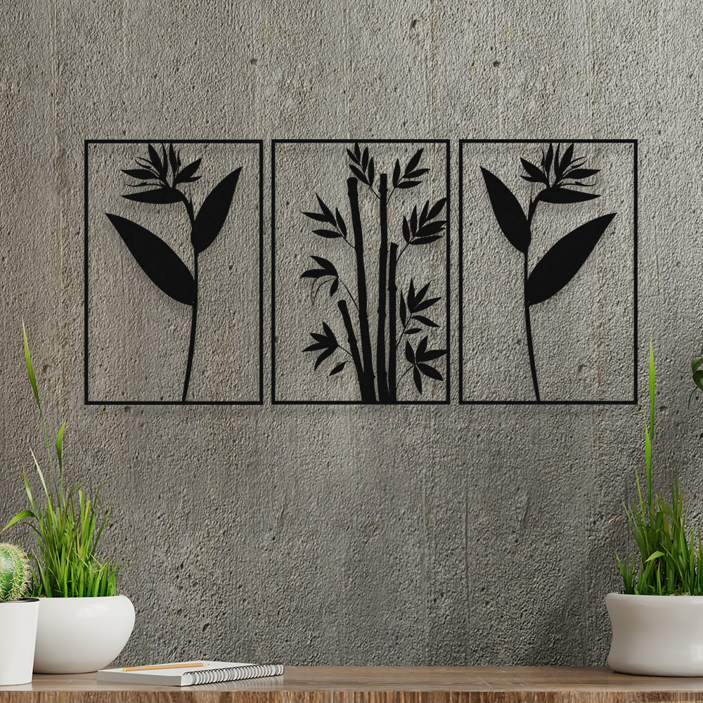 - Zarif Üçlü Çiçekler, Metal Dekarosyon Duvar Tabloları Her bir Metal Tablonun ölçüsü 50x34 cm dir toplam kapladığı alan 105x50cm dir.