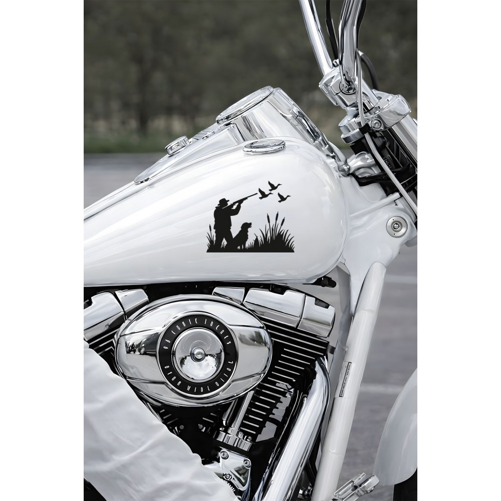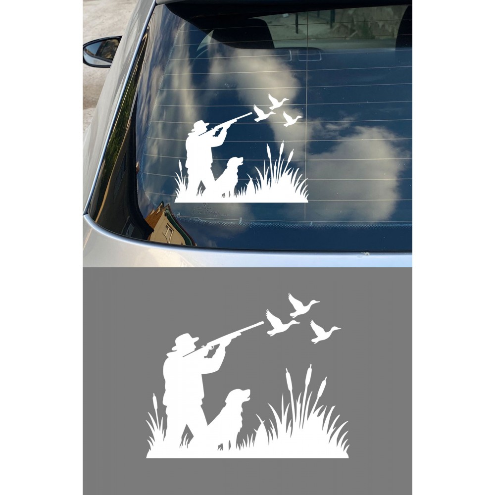 Avcı Sticker – Kuş ve Köpek Figürlü Sticker - Araba Motor Oto Sticker 15x13cm