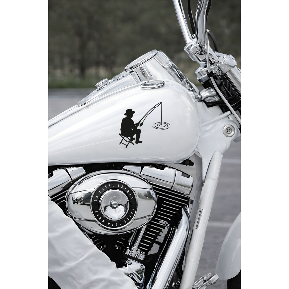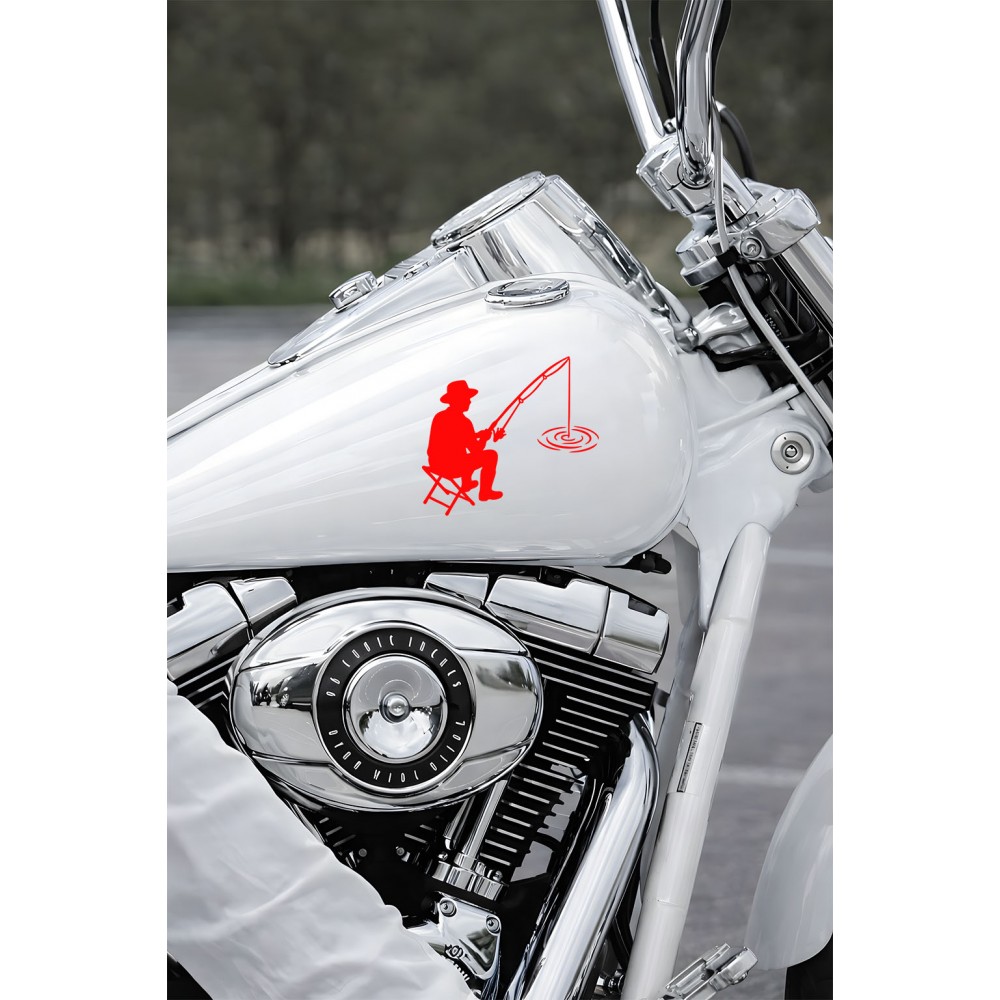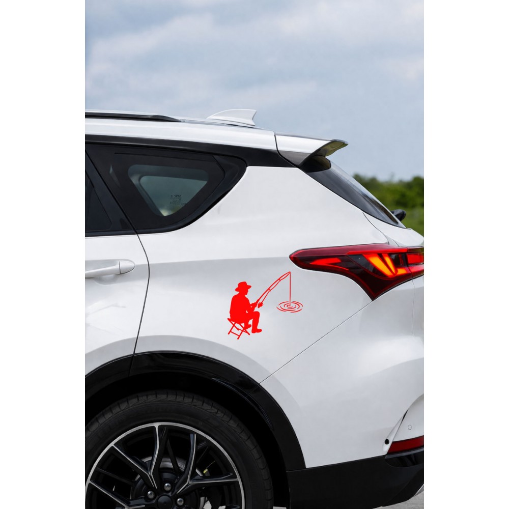 Balıkçı Oto Stickerı – Balık Tutma Temalı - Araba Motor Oto Sticker 15x13cm