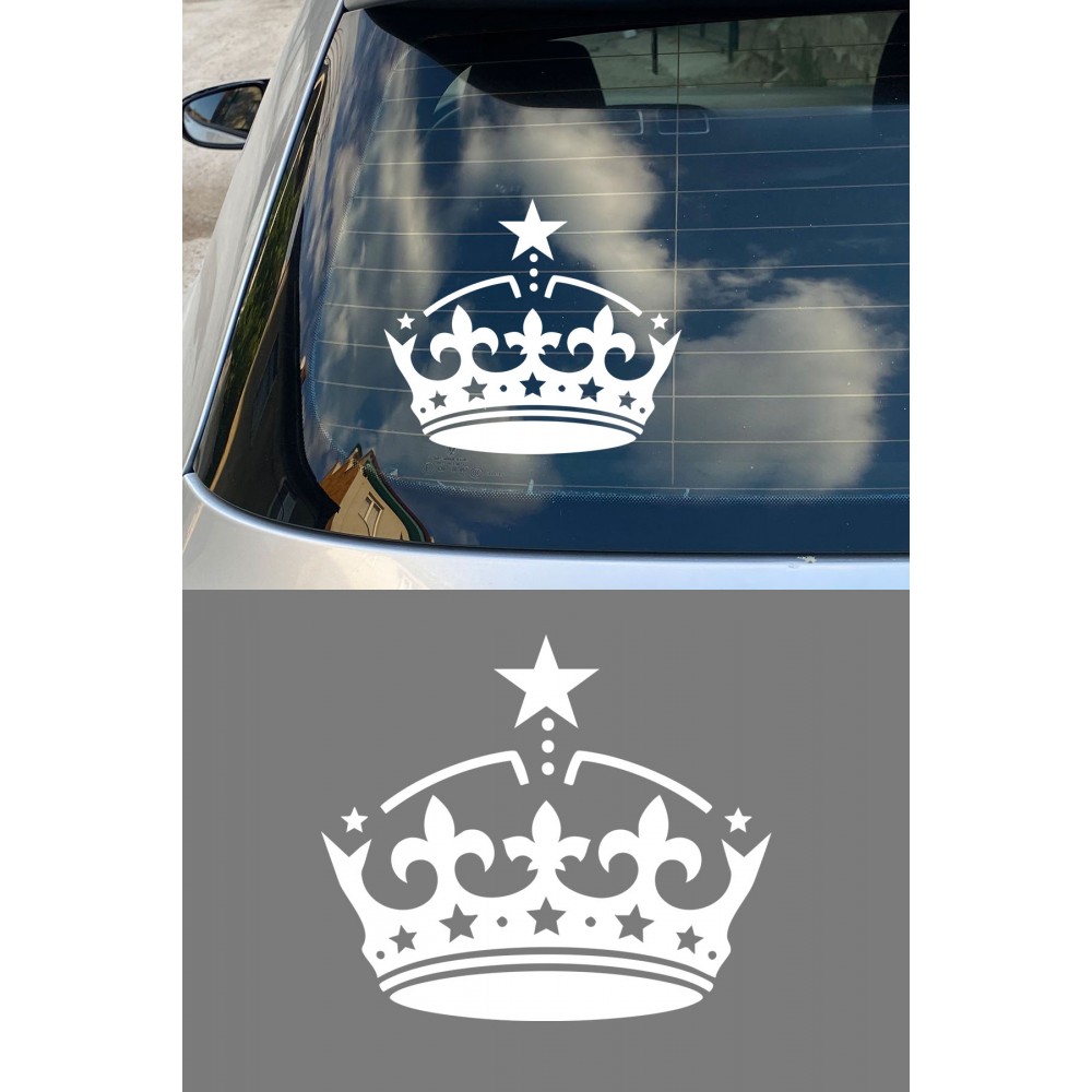 Yıldızlı Taç Oto Sticker - Araç Cam Sticker - Yıldız Detaylı Taç Sticker 15x13cm