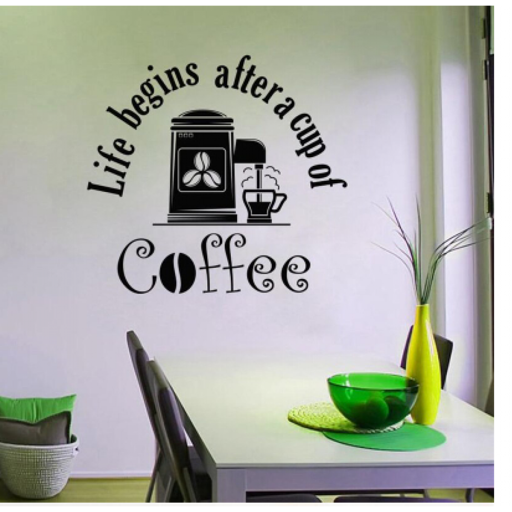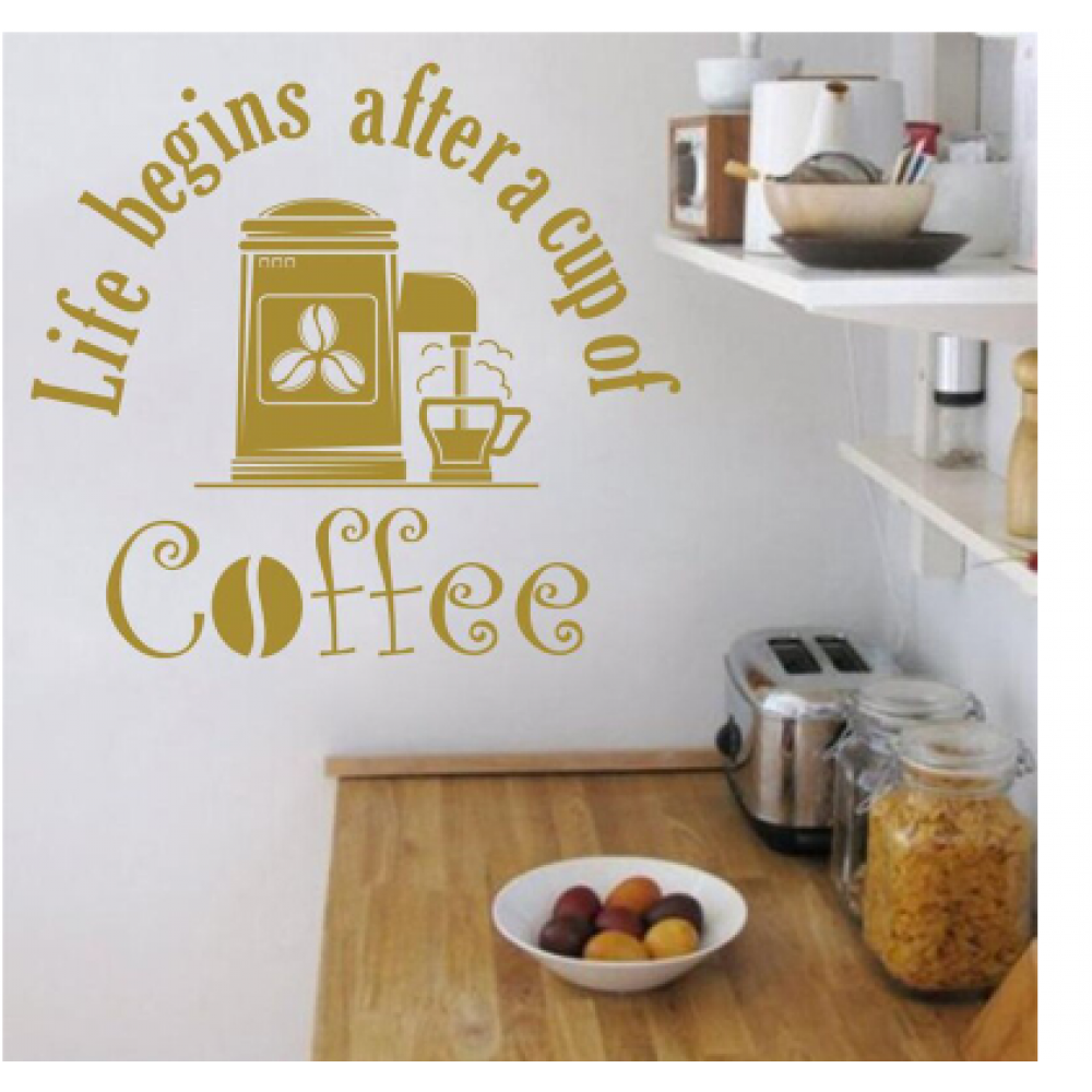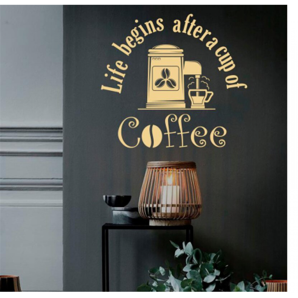Kafe ve Restoranlara Özel Life Begins After a Cup Of Coffee Yazısı Cam Vitrin Sticker Yapıştırma