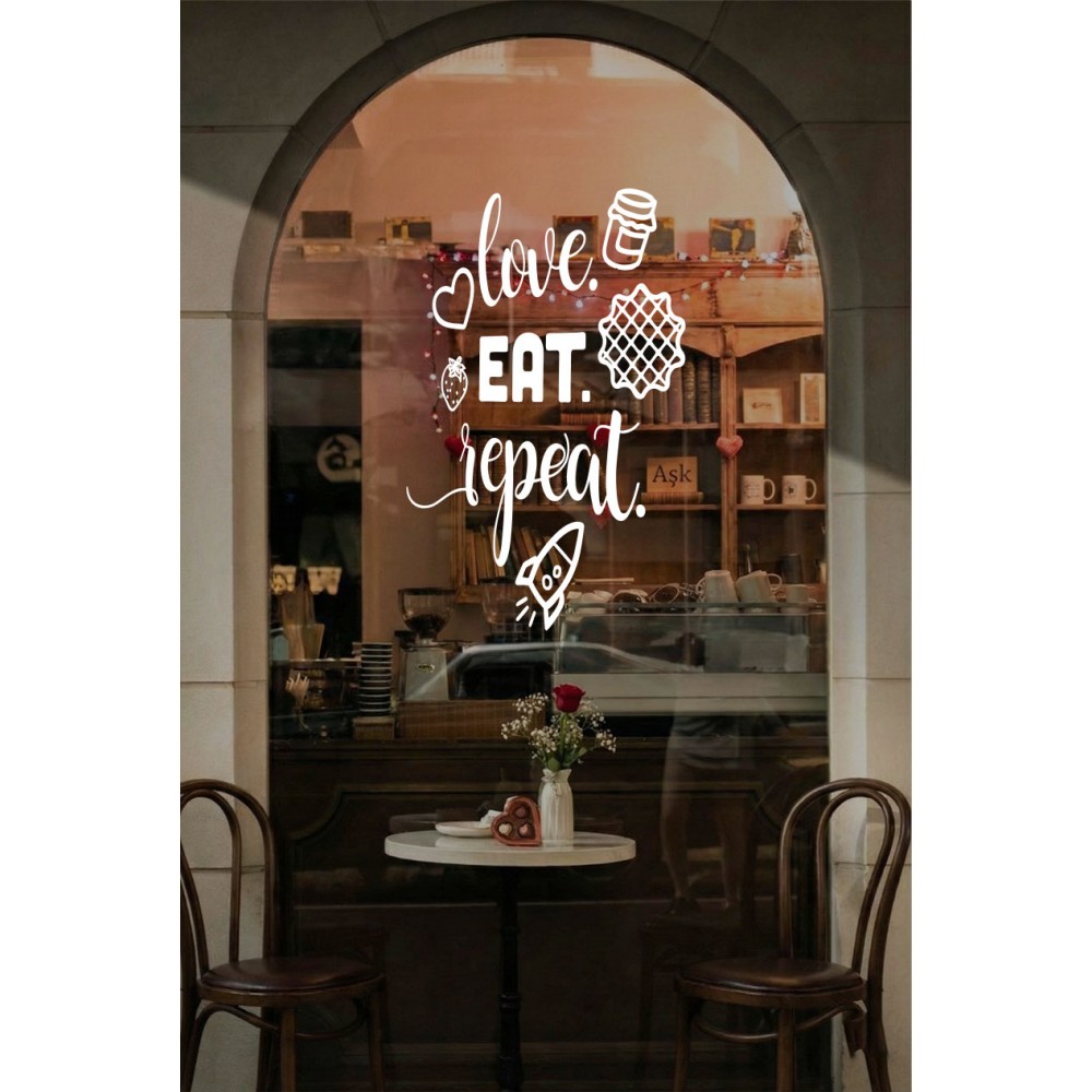 Love Eat Repeat Yazılı Cam Sticker Seti – Kafe Duvar & Vitrin Dekoru – Tatlı & Kahve Temalı Sticker