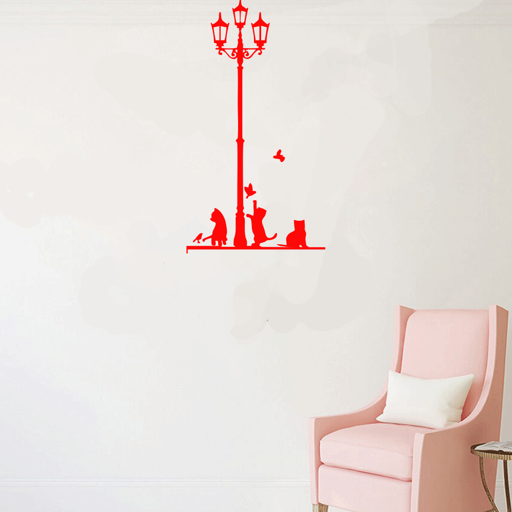 Petshop Ve Veterinerlere Özel Gece Lambası Altındaki Kediler Sticker Yapıştırma