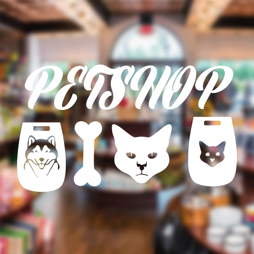 petshop animal icons sticker, hayvan ikonlu cam çıkartması, veteriner vitrin dekoru, petshop cam sticker seti, minimalist hayvan figürleri, hayvan temalı vitrin süsü, modern petshop dekorasyonu