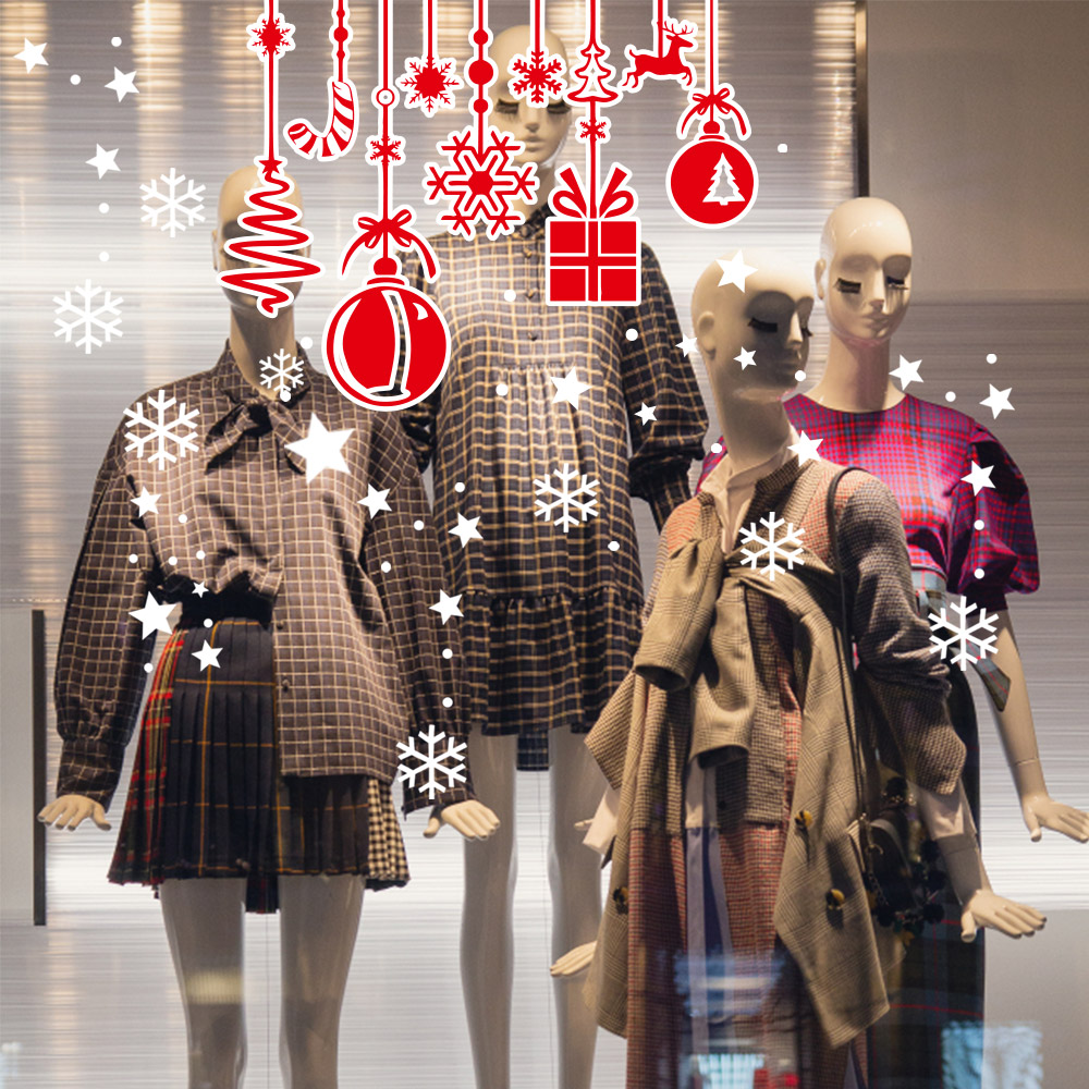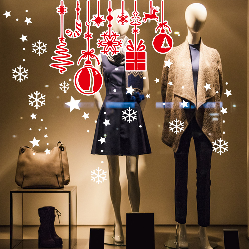 Salınan Hediye Kutusu Kar Tanesi ve Yılbaşı Ağacı Vitrin Süslemeleri Sticker 70x70cm