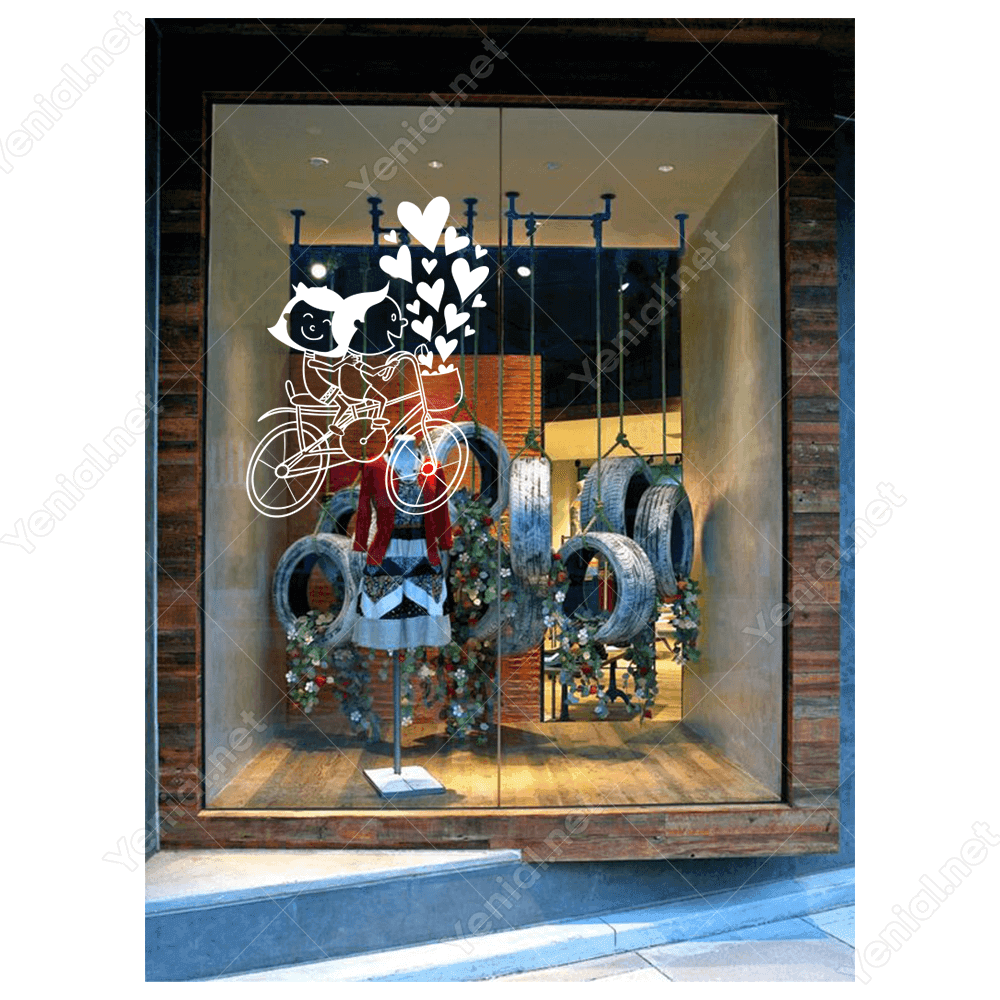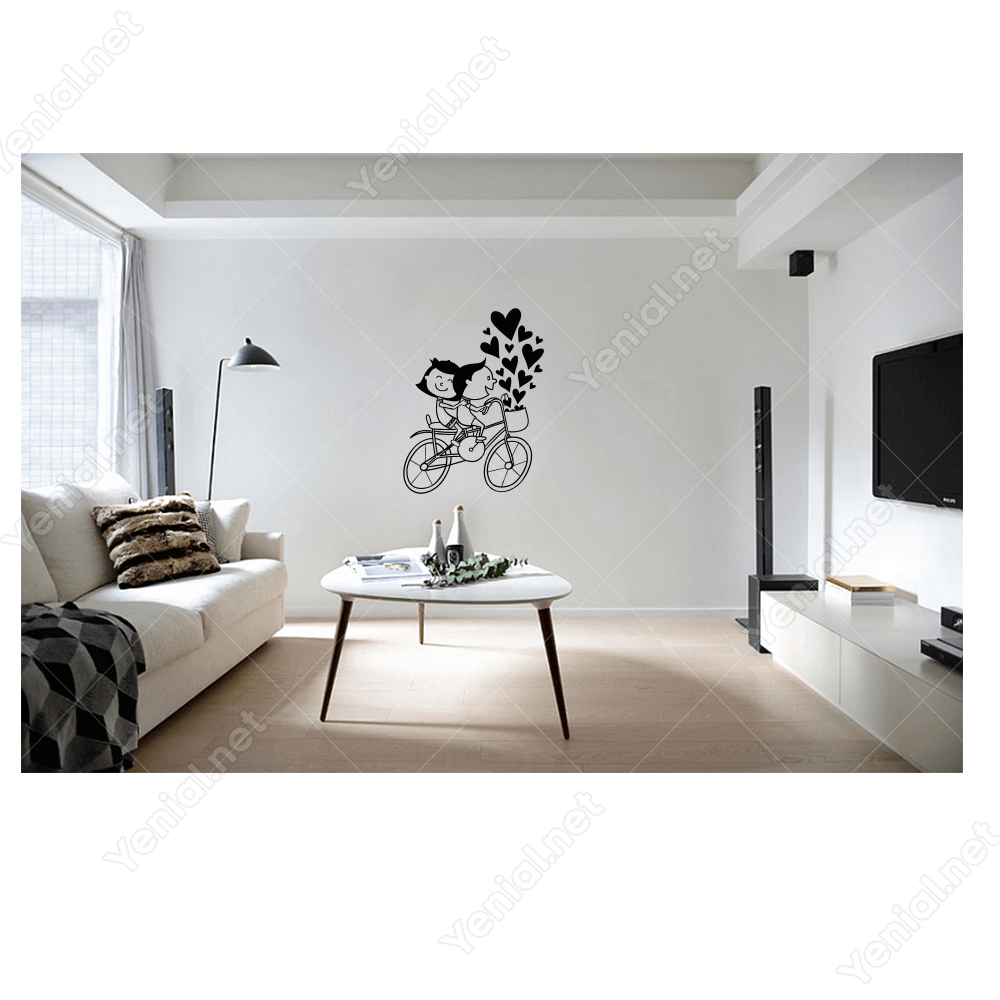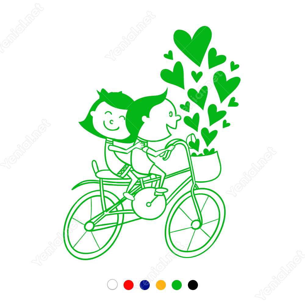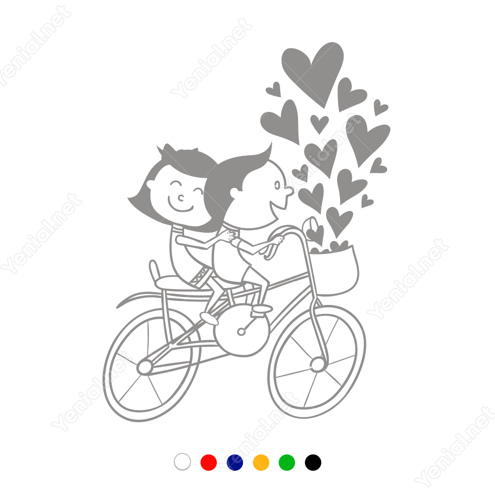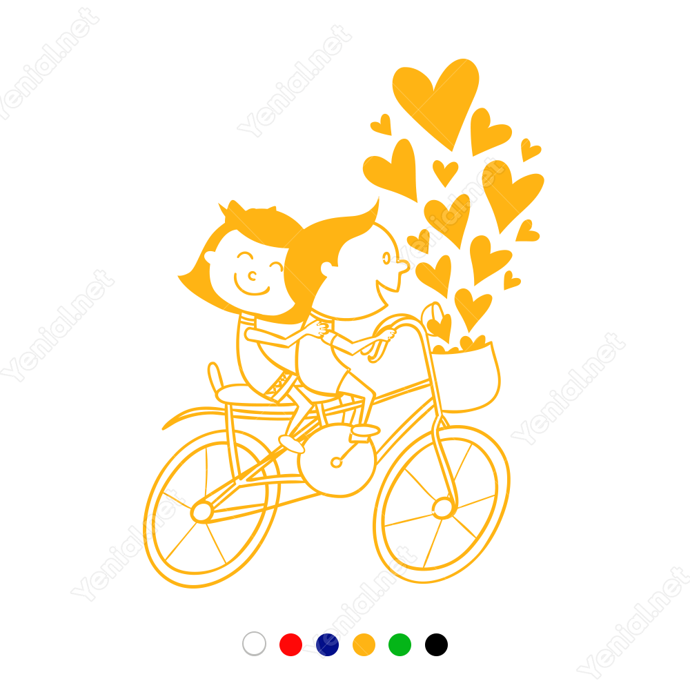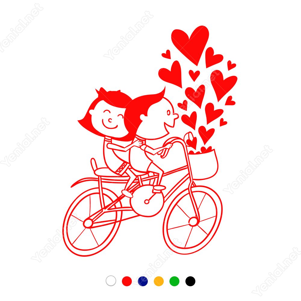 Sevgililer Günü Bisikletli Aşıklar Birlikteler Sticker Yapıştırma