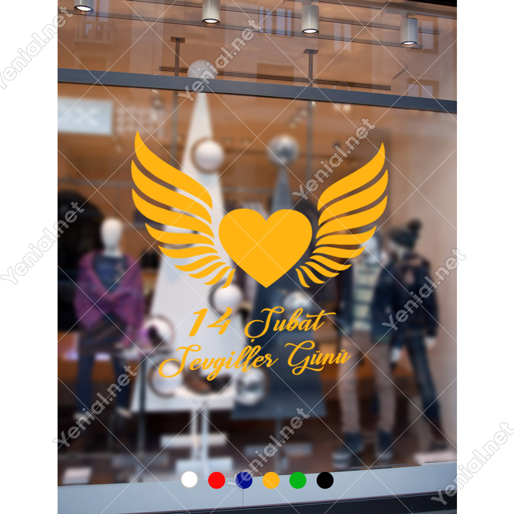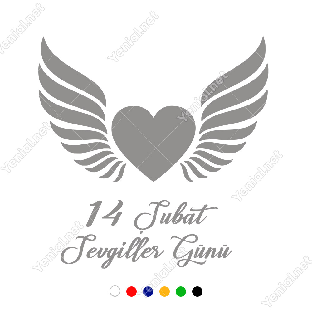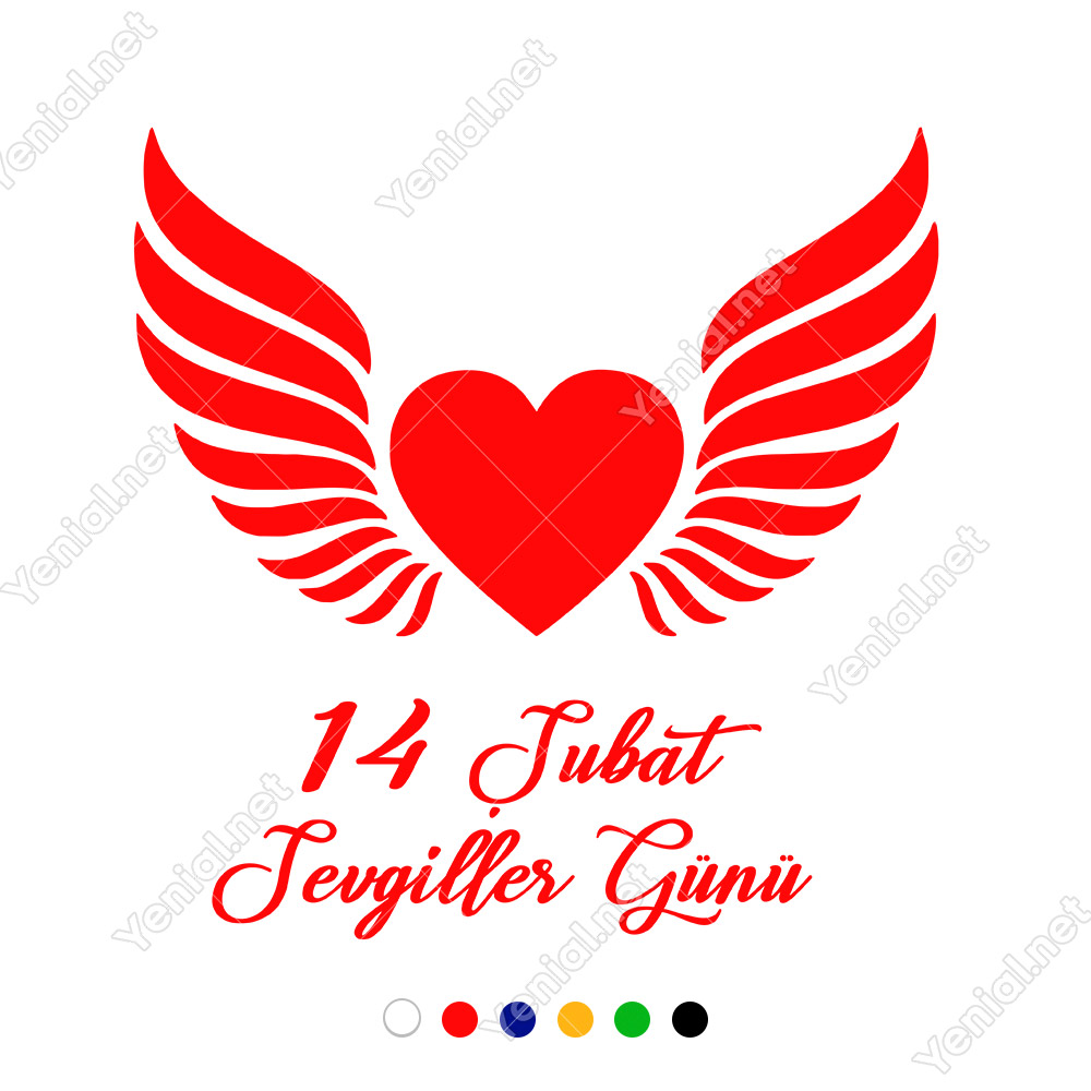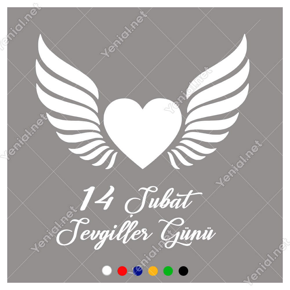 Sevgililer Günü Yazısı ve Kanatlı Kalp Sticker