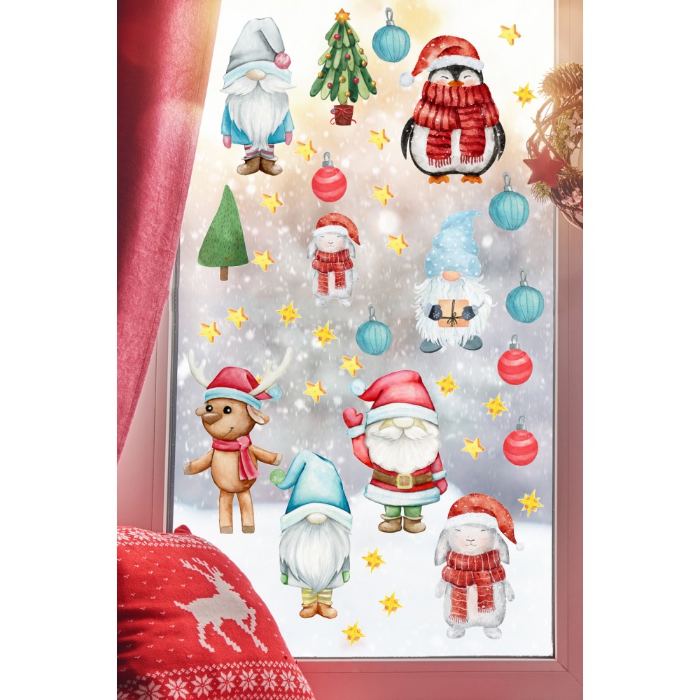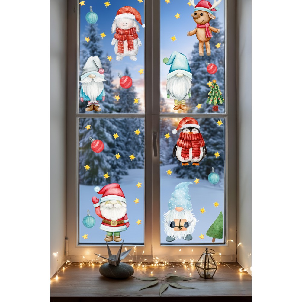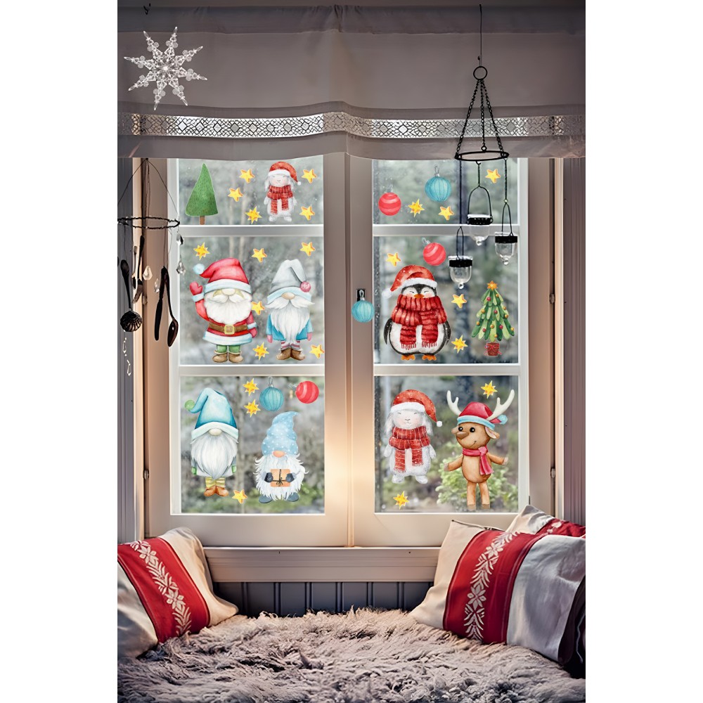 Yılbaşı Cam Sticker Penguen Tavşan Ev Cam Vitrin İçin Yeni Yıl Çocuk Bebek Odası Sticker Seti