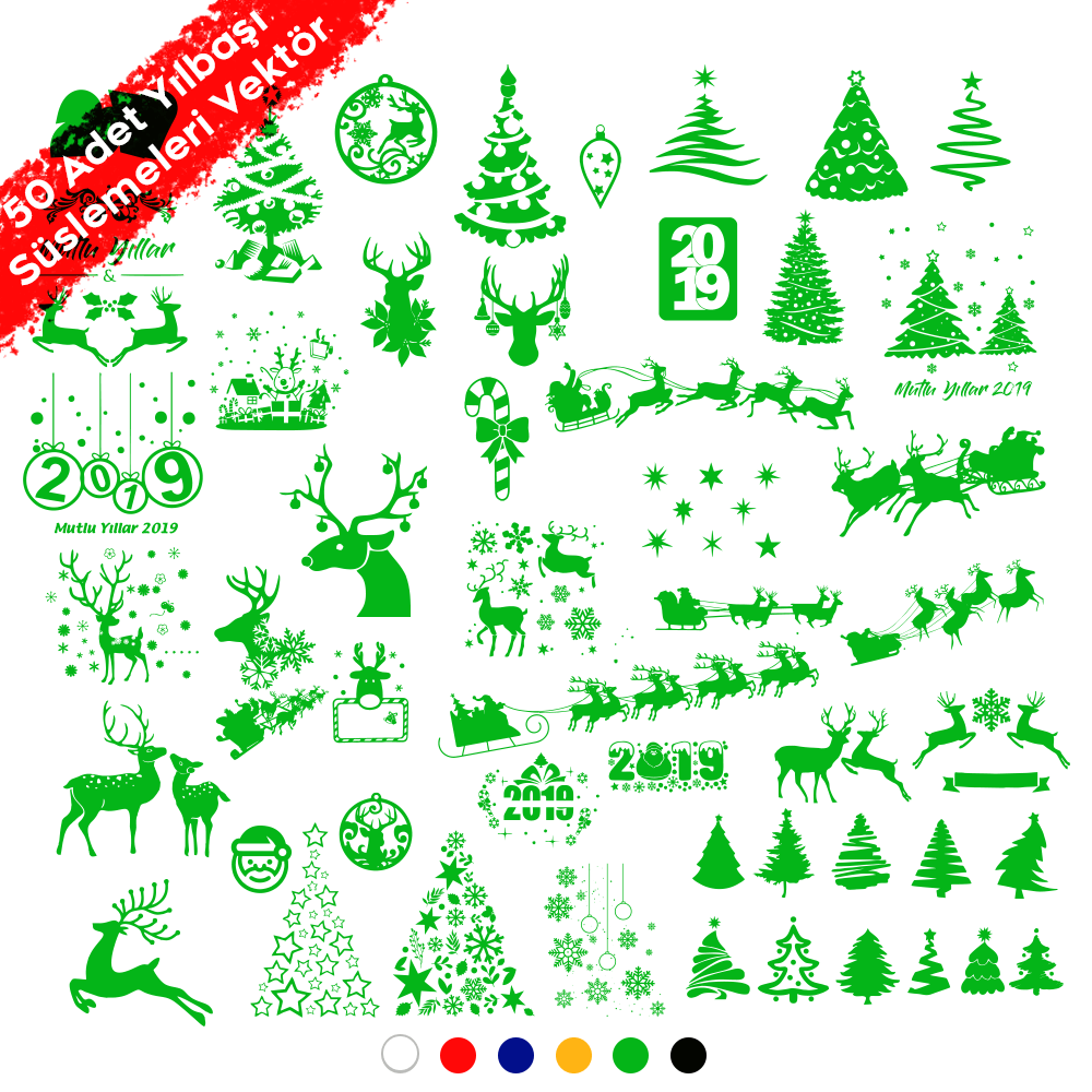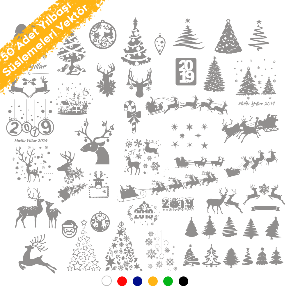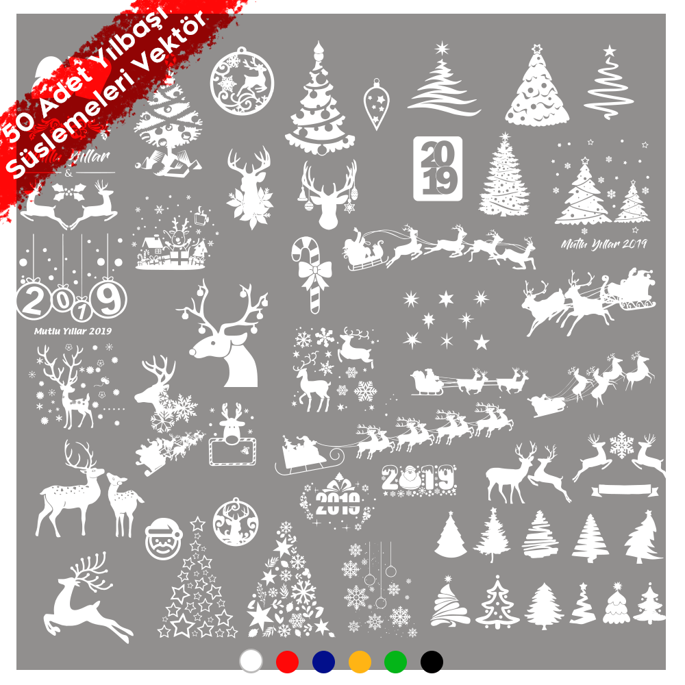 Yılbaşı Süslemeleri Geyik Yıldız Kar Tanesi 2019 Çam 50 Adet Sticker CDR Dosyası